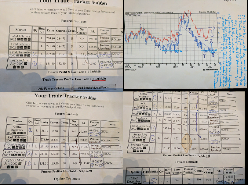 Shortly after this chart, everyone got wise to the fact that Coffee was going to rise and volatility went through the roof. "They" moved prices down (yes they can) to absorb as many contracts as they could (at which point I liquidated everything and spent 96%+ of the account on Coffee Calls...because YOLO) :lol: If I remember correctly, they were about $0.10 out of the money; the strike was about where I went long prior to the decline.